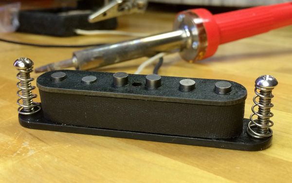 Shipping not included. This pickup comes with 4 conductor wire for you to configure coil splitting. Ask us we can help if this is confusing for you. Bobbins come standard double black but you can have Cream, White or a combination of 2 colors with no extra charge. We have a selection of Gold ($25), Nickel ($15), Chrome ($25) or Relic'd ($45) pickup covers. Specify in checkout.