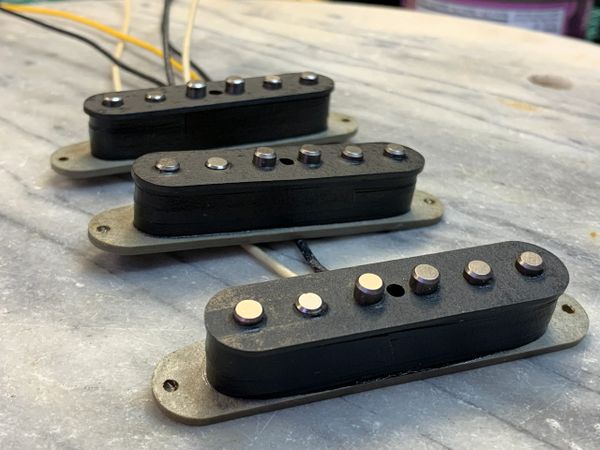 Of course you can have each pickup custom designed to your specification. There's no limit! You can have staggered pickup poles or all one height. You have a choice of Alnico II, III and V magnets and you can choose to have .185 or .195 pole piece widths. 42 and 43 Plain Enamel and or Full Formvar copper wire. You could even opt out of having your middle pickup reverse wound. Its up to and your imagination.
